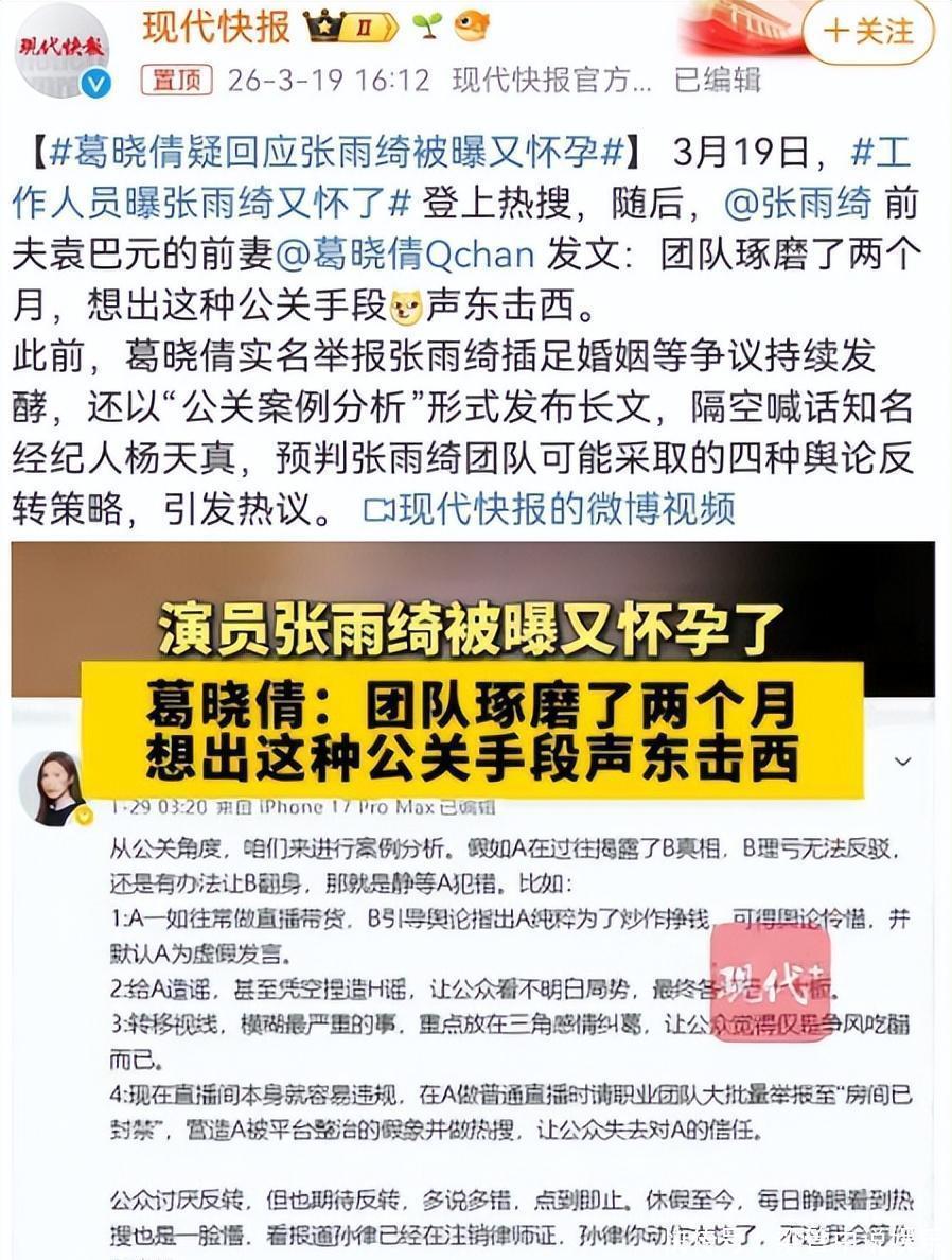 然而随着时间的推移,最近这几天网络上又突然曝出张雨绮疑似怀孕的消息,这消息一出来葛晓倩就进行了回应。