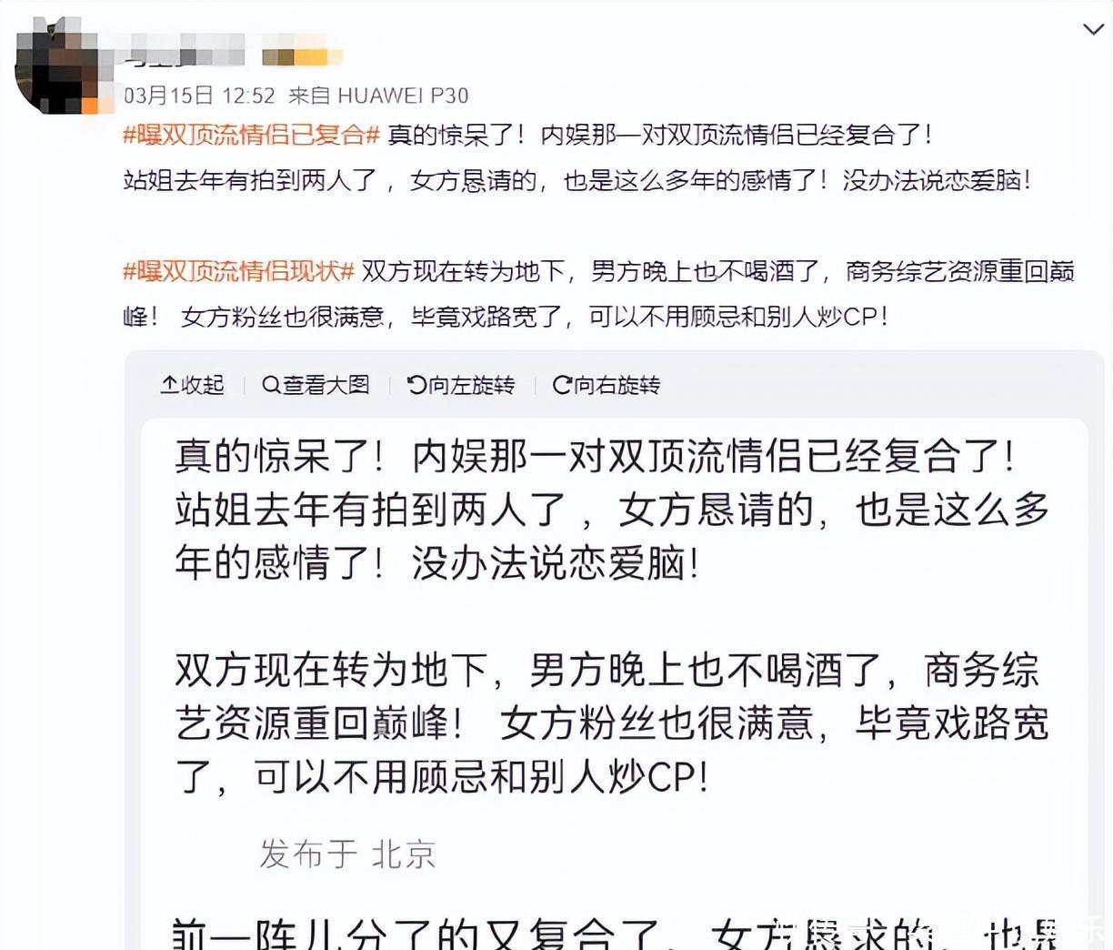 娱乐圈里面的感情动态一直都是让网友们关注的事情,然而最近这几天有一个“顶流复合”的消息突然冲上热搜榜单。