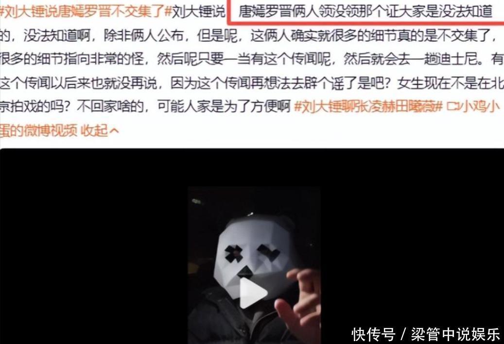 然而就在最近这几天,他把话题放在了唐嫣和罗晋的身上,他说这俩人没有交集了,甚至还推辞俩人领“离证”。